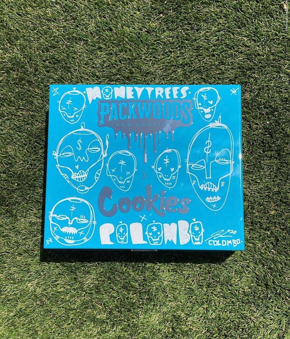 Die Packwoods Boss Box enthält 4 Gläser mit jeweils 3,5 Gramm Blüten, 6 Filter aus technischem Glas und 4 Heftchen mit hochwertigem Vibes-Reis-Zigarettenpapier, einen Aschenbecher und 7 vorgerollte Blunts von Packwoods mit gemischten Aromen.